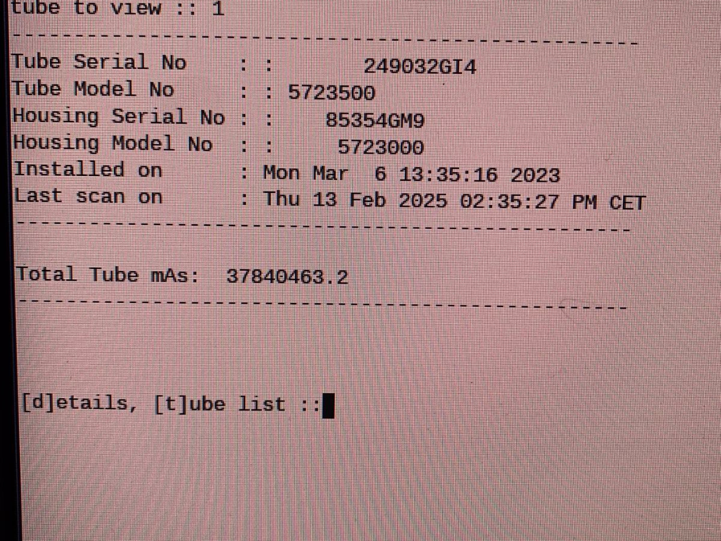 • Tube count: 45.187.138,5 mAs at dismantling