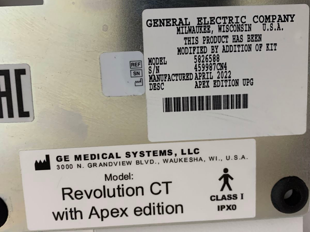• Brand: GE• Model: Revolution CT Apex Edition 512