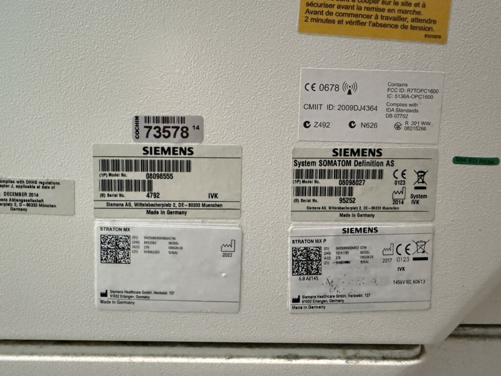 SW options console: GET_WORKLIST, CAP3D_FILTER_SSD, CAP3D_FILTER_MIP, CAP3D_MAIN, CAP3D_VOIMODE,BOLUS_TRACK, CARE_VISION, CARE_DOSE, SYNGO_GENERAL_LICENCE, CAP3D_FILTER_VRT, CAP3D_EDITOR, MPPS_SUPPORT, CTAPP_MAIN, DUAL_MON, UHR_03, UHR, CAP3D_MULTIMONITOR, CTAPP_FILTER_VRT, CTAPP_FILTER_MIP, DEFINITION_AS, SLICE_128, INTERVENTION_ENH, INTERVENTION_3D, MAX_POWER,INTERVENTION_ARTEFACT, INTERVENTION_NEEDLETRACK, DE_SINGLE_SOURCE_RESEARCH, CARE_DOSE_ADJUST, CARE_DOSE_PROFILE, CARE_DOSE_DASHBORAD, VOLTAGE_70KV, CARE_DOSE_AUTOKV, RECON_ITERATIVE_STEP1, SCAN_TILTEDSPIRAL, MR_Support_i
