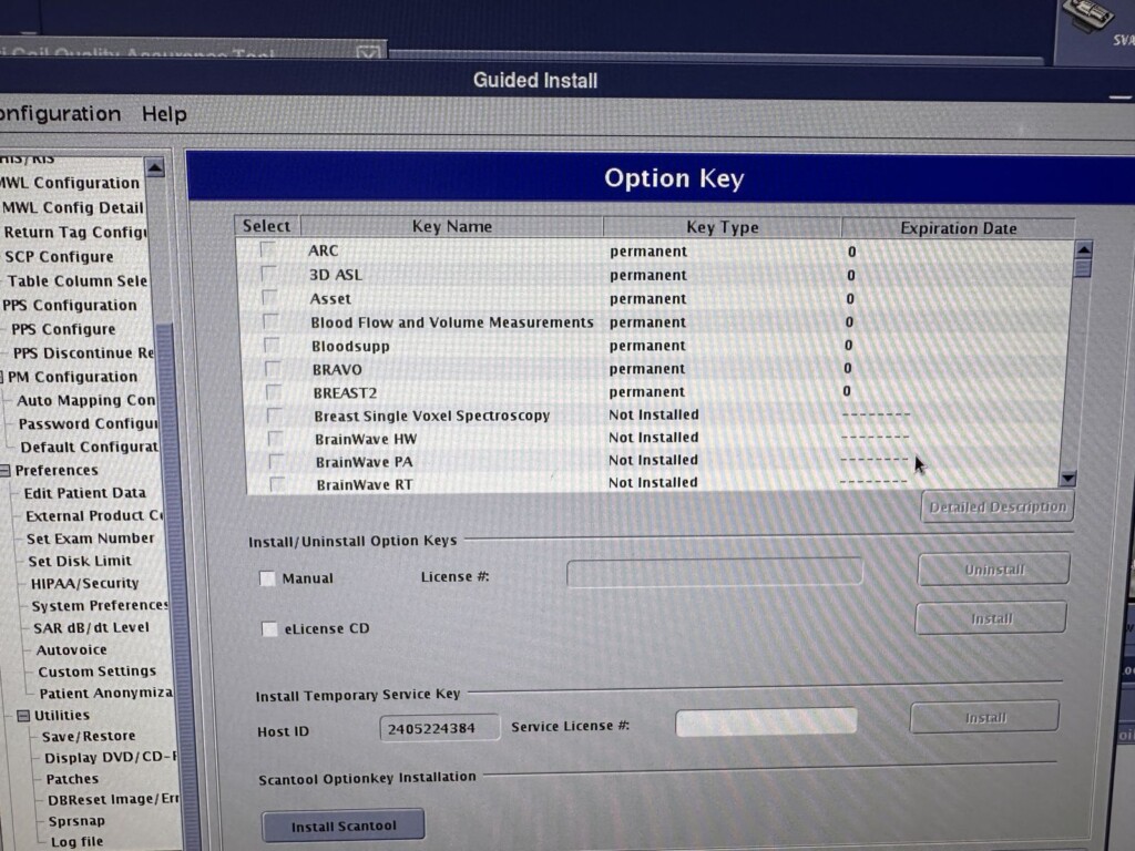 SW options console: ARC, 3D ASL, Blood Flow and Volume Measurements, Bloodsupp, BRAVO, BREAST2, BrainStat AIF, Cine, CINE IR, COSMIC, Cube T2, 3D Dual Echo, Delayed Enhancement,DW EPI, E3DTOF, Enhanced DWI, Echo Planar Imaging, Fastcine, Fast Gradient Echo, Fiestat 2D, 2D Fat Sat Fiesta, Fiesta 3D, 3D Fat Sat FIESTA, FIESTAT-c, FLAR3D, FLAIR EPI, 3DFRFSE, Fast Spin Echo and FLAIR, FSE_XL, Fluoro-triggered MRA, Time of Flight, Modality Worklist, IDEAL, iDrive, iDRIVE Pro, Inhance DeltaFlow, Inhance 2D Inflow, Inhance 3D VelocityInhance 3D Inflow IRLava, LAVA-DE, LAVA-XV, 2D MERGE, 3DMERGE, multi-echo fgre, Multi-Phase (variable delays), Phase Contrast Vascular Imaging, ProbePRESS, PROPELLER, DW PROPELLER, T1 Flair PROPELLER, T2 PROPELLER, T2 Flair PROPELLER, QuickSTEP, Ready Brain, iDrive Pro Plus, Smart Prep, SPECIAL, SSFSE, SSFSE MRCP, T2Star Weighted Angiography, T2MAP, Diffusion Tensor, Three Plane Localizer, FiberTrak, TRICKS, VIBRANT-DE, IP Protection, IDEAL IQ, eXtreme Performance Gradient, Phase Imaging Technique, MAVRIC SL, Body Navigator, Black Blood SSFSE, Prospective Motion Correction, PS MDE, Silent MR, Focus, Silent Propeller, DW Prep, DISCO, Chemical Shift, MDE Plus, Cube DIR, Auto Navigator, Tracker, Hyperband, Synthetic DWI, Flex, Hypersense, HyperCube, Integrated Registration, Ready View, Ready View Body View, Ready View Brain View, Volume Viewer API