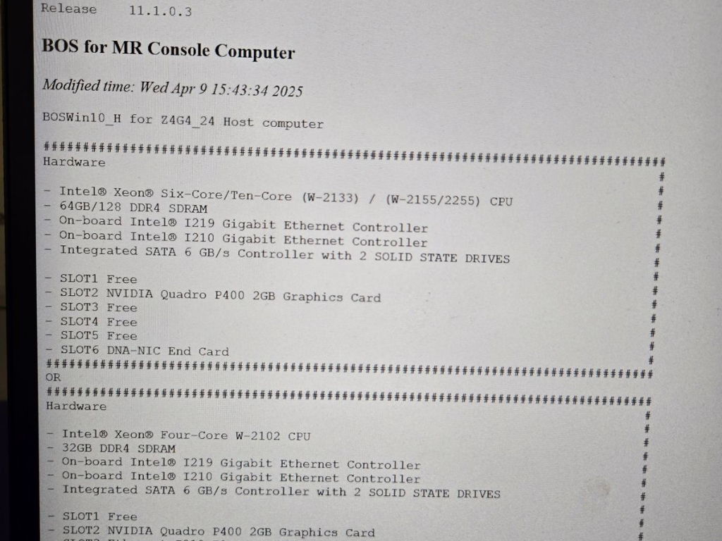 • SW version console: V11.1