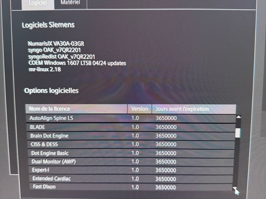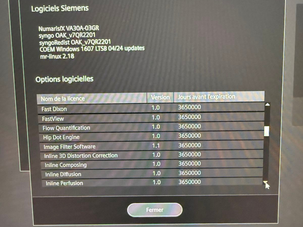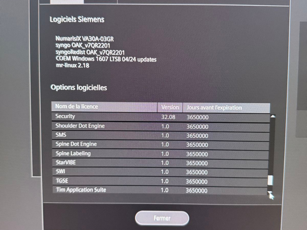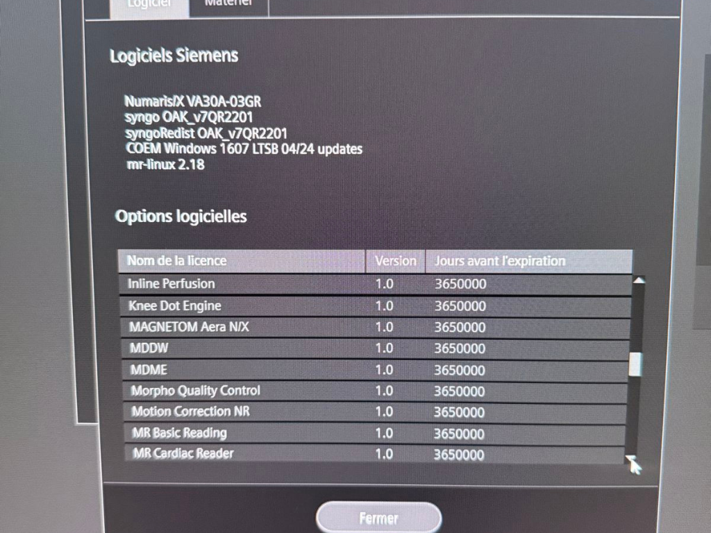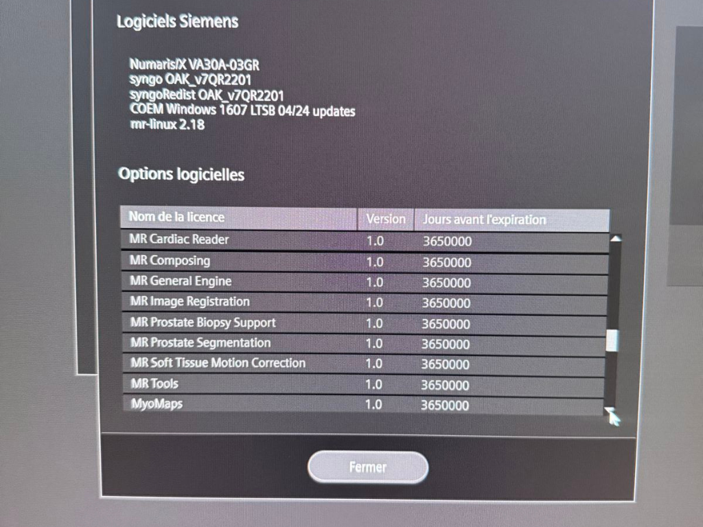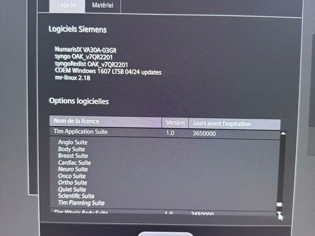 SW options console: Advanced Diffusion, Advanced WARP, Anatomy Register, AutoAlign Hip, AutoAlign Knee, AutoAlign Shoulder, AutoAlign Spine Labeling and Numbering, AutoAlign Spine LS, BLADE, Brain Dot Engine, CISS&DESS, Dot Engine Basic, Dual Monitor (AWP), Expert-I, Extended Cardiac, Fast Dixon, FastView, Flow Quantification, Hip Dot Engine, Image Filter Software, Inline 3D Distortion Correction, Inline Composing, Inline Diffusion, Inline Perfusion, Knee Dot Engine, MAGNETOM Aera N/X, MDDW, MDME, Morpho Quality Control, Motion Correction NR, MR Basic Reading, MR Cardiac Reader, MR Composing, MR General Engine, MR Image Registration, MR Prostate Biopsy Support, MR Prostate Segmentation, MR Soft Tissue Motion Correction, MR Tools, MyoMaps, NATIVE, Neuro Perfusion Local AIF, Optimized Protocols for EC, PhoenixZIP, QISS Native Angiography, Region Growing, Rest of World, Security, Shoulder Dot Engine, SMS, Spine Dot Engine, Spine Labeling, StarVIBE, SWI, TGSE? Tim Application Suite, Tim Whole Body Suite, Turbo Suite Essentials, TWIST, TWIST VIBE