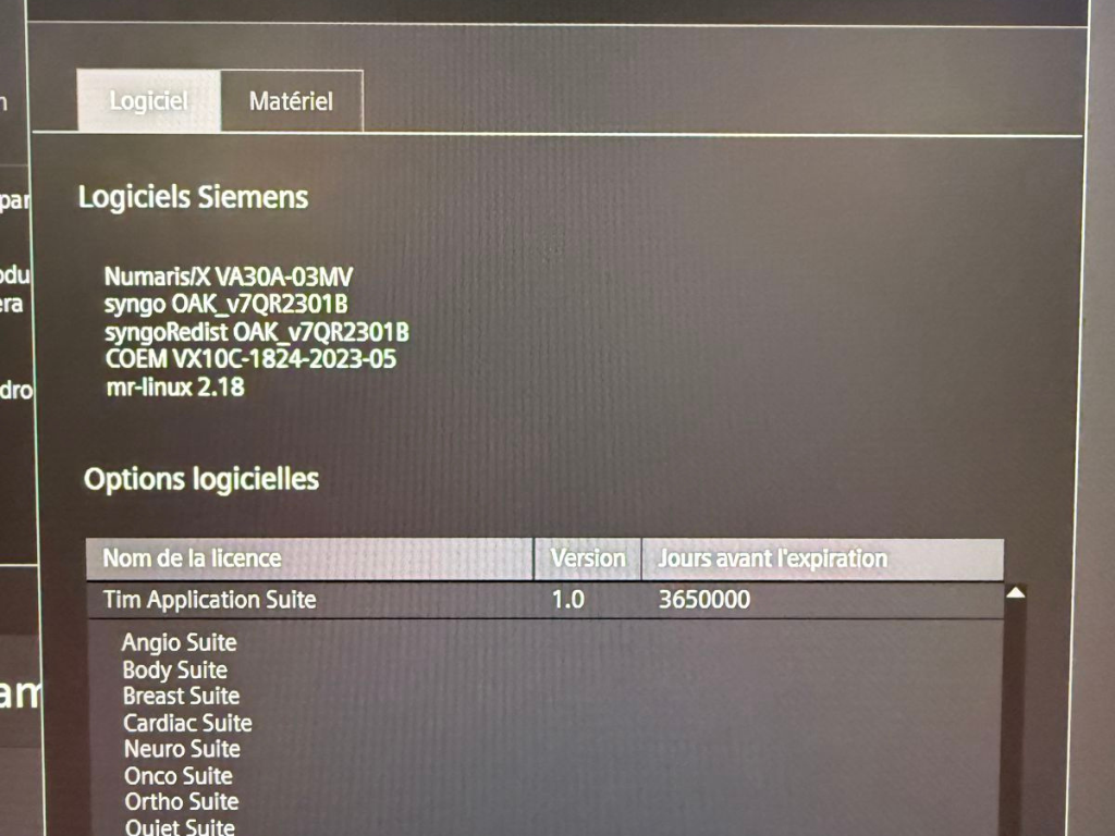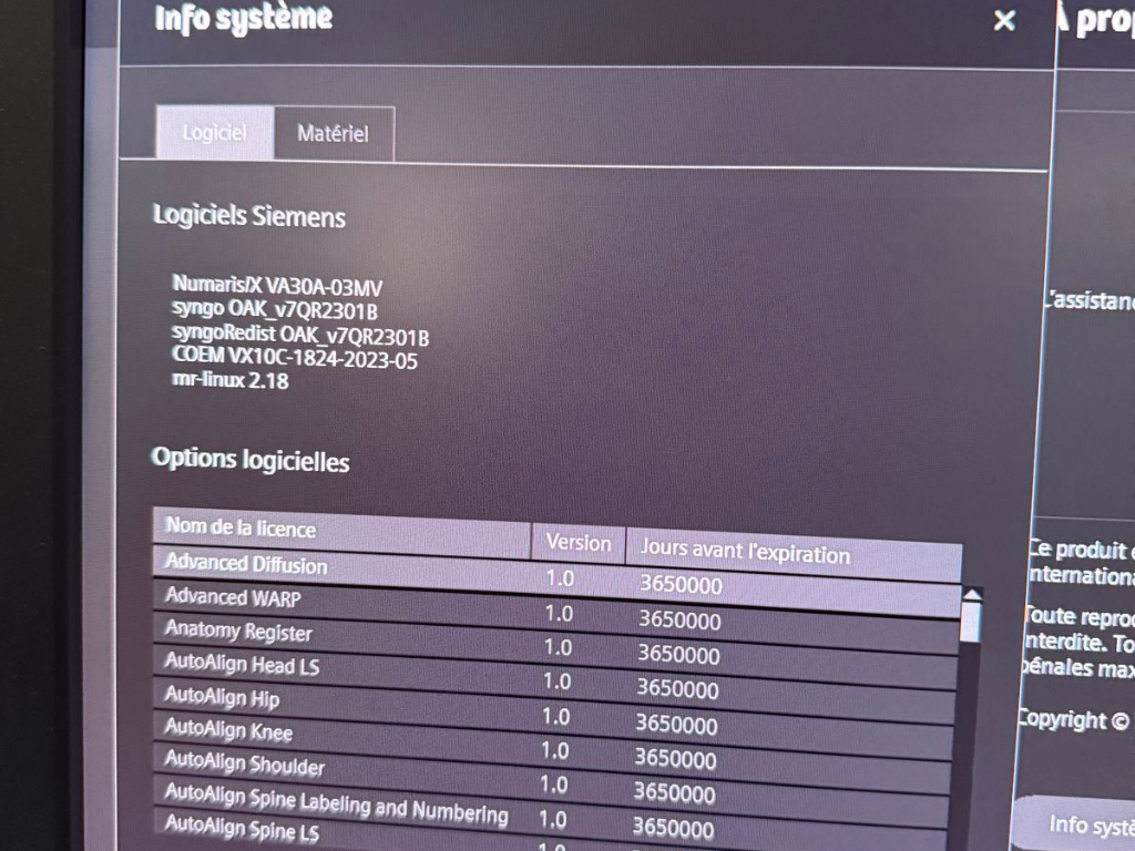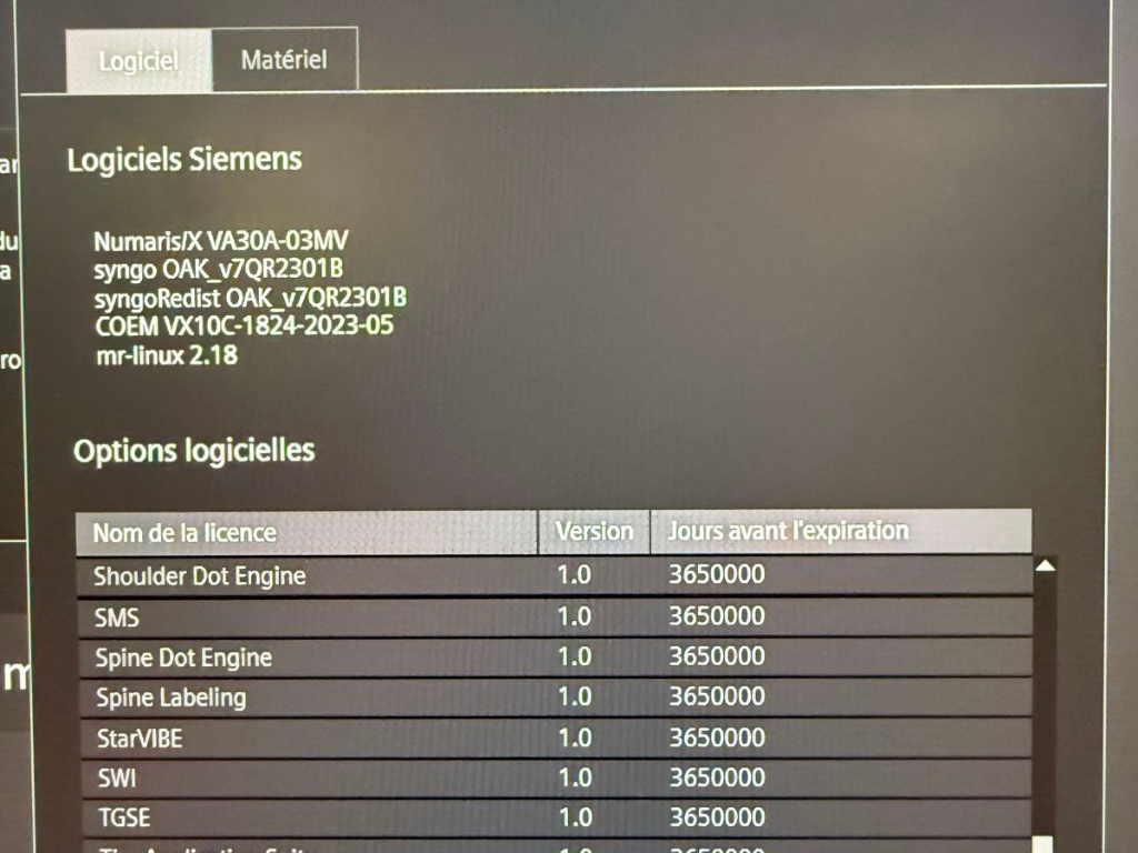SW options console: Advanced Diffusion, Advanced WARP, Anatomy Register, AutoAlign Head LS, AutoAlign Hip, AutoAlign Knee, AutoAlign Shoulder, Autoalign Spine Labeling and Numbering, AutoAlign Spine LS, BLADE, Brain Dot Engine, CISS & DESS, Dot Engine, Basic, Dual Monitor (AWP), Expert-I, Fast Dixon, Fast View, Flow Quantification, Hip Dot Engine, Image Filter Software, Inline 3D Distortion Correction, Inline Composing, Inline Diffusion, Inline Perfusion, Knee Dot Engine, MAGNETOM Aera N/X, MDDW, MDME, Morpho Quality Control, Motion Correction NR, MR Basic Reading, MR Cardiac, Reader, MR Composing, MR General Engine, MR Image Registration, MR Prostate Biopsy Support, MR Prostate Segmentation, MR Soft Tissue Motion Correction, MR Tools, MyoMaps, NATIVE, Neuro Perfusion Local AIF, Optimized Protocols for EC, PhoenixZIP, QISS Native Angiography, Region Growing, Regular Table range, Rest of World, Security, Shoulder Dot Engine, SMS, Spine Dot Engine, Spine Labeling, StarVIBE, SWI, TGSE, Tim Application Suite, Turbo Suite Essentials, TWIST VIBE