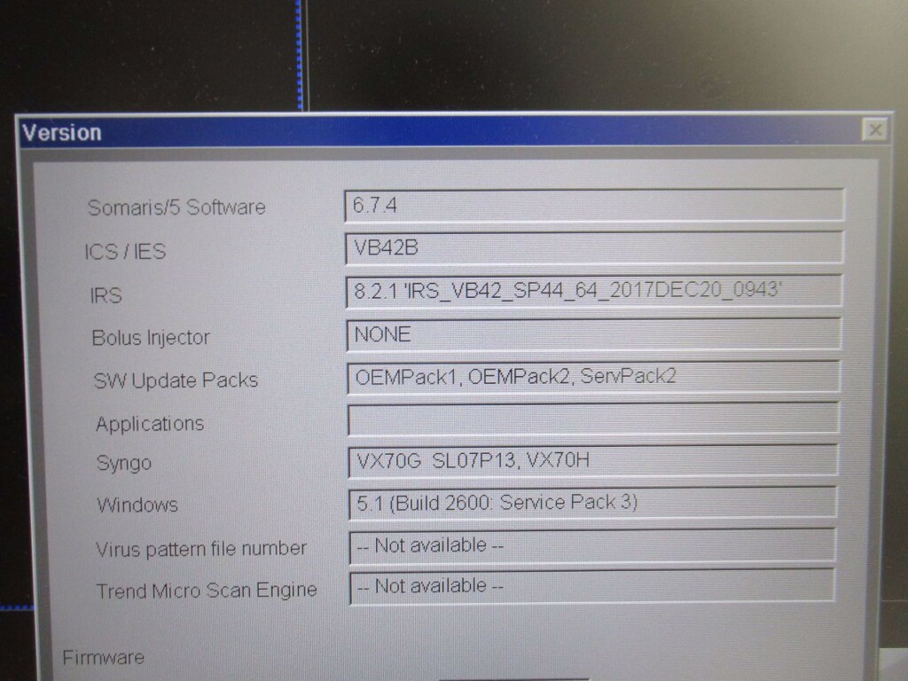 • Operation system console: Syngo 6.7.4