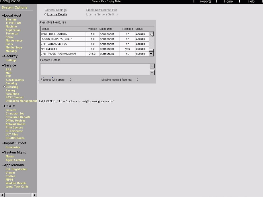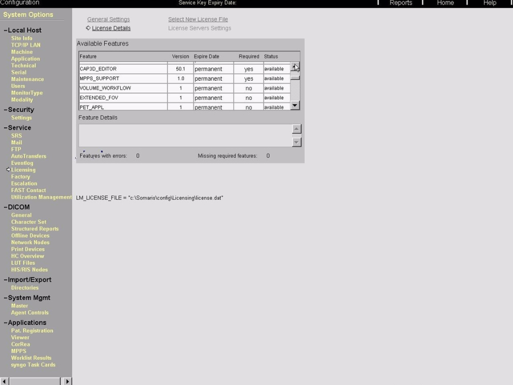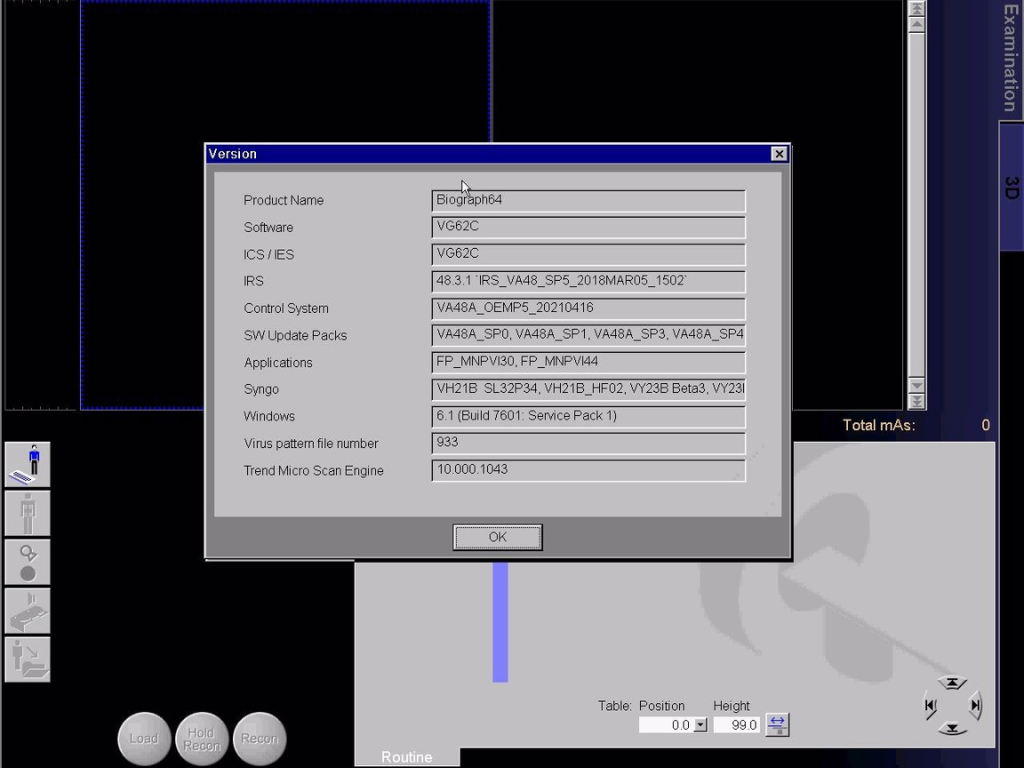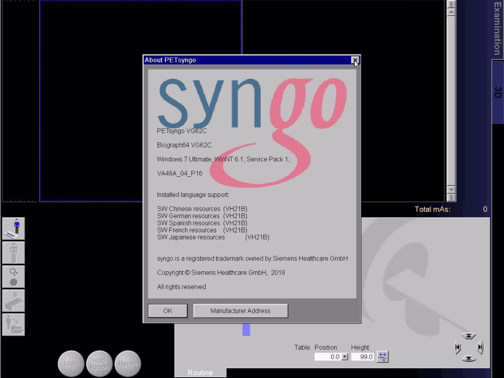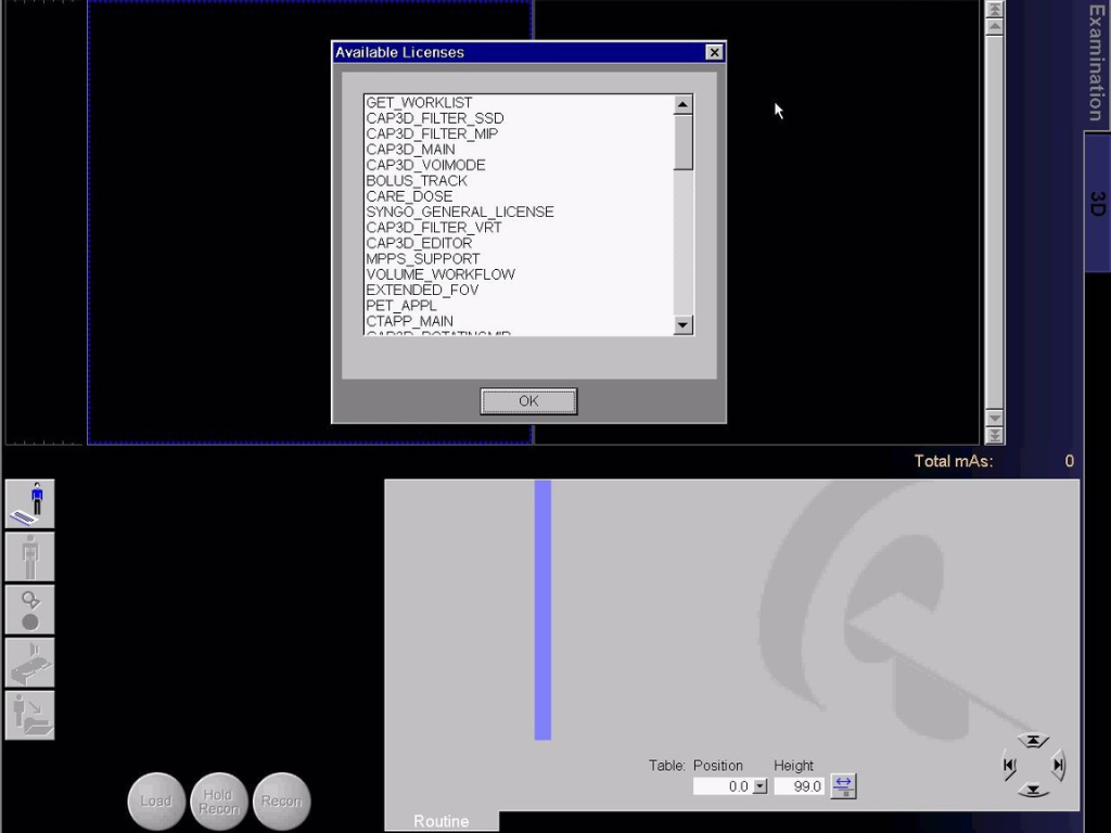 SW options console: GET_WORKLIST, CAP3D_FILTER_SSD, CAP3D_FILTER_MIP, CAP3D_MAIN, CAP3D_VOIMODE, BOLUS_TRACK, CARE_DOSE, SYNGO_GENERAL_LICENSE, CAP3D_FILTER_VRT, CAP3D_EDITOR, MPPS_SUPPORT, VOLUME_WORKFLOW, EXTENDED_FOV, PET_APPL, CTAPP_MAIN, CAP3D_ROTATINGMIP, DUAL_MON, RESPIRATORY_RETRO, RESPIRATORY_PRO, NMG_CD_VIEWER, CAP3D_BONEREMOVAL, CAP3D_MULTIMONITOR, CTAPP_FILTER_MIP, CAD_TRUED_MAIN, CAD_TRUED_VOIMODE, CAP_TRUED_FILTER_SSD, CAD_TRUED_FILTER_MIP, CAD_TRUED_FILTER_VRT, CAD_TRUED_FUSIONBASE, CAD_TRUED_FUSIONLM, CAD_TRUED_FUSIONCLIPVIEW, CAD_TRUED_ROTATINGMIP, CAD_TRUED_MULTIMONITOR, DEFINITION_AS, SLICE_64, CARE_DOSE_ADJUST, CARE_DOSE_PROFILE, CARE_DOSE_DASHBOARD, PET_HIREZ, PET_OSEM3D, PET_TRUEX, PET_DYNAMIC, PET_RESPIRATORY, PET_TOF, PET_NEMA_7, PET_RESPIRATORY_OPTIMAL, CAD_TRUED_BASIC, VOLTAGE_70KV, CARE_DOSE_AUTOKV, RECON_ITERATIVE_STEP1, ENH_EXTENDED_FOV, MR_Support_i, CAD_TRUED_FUSIONLAYOUT, PET_NEMA_7