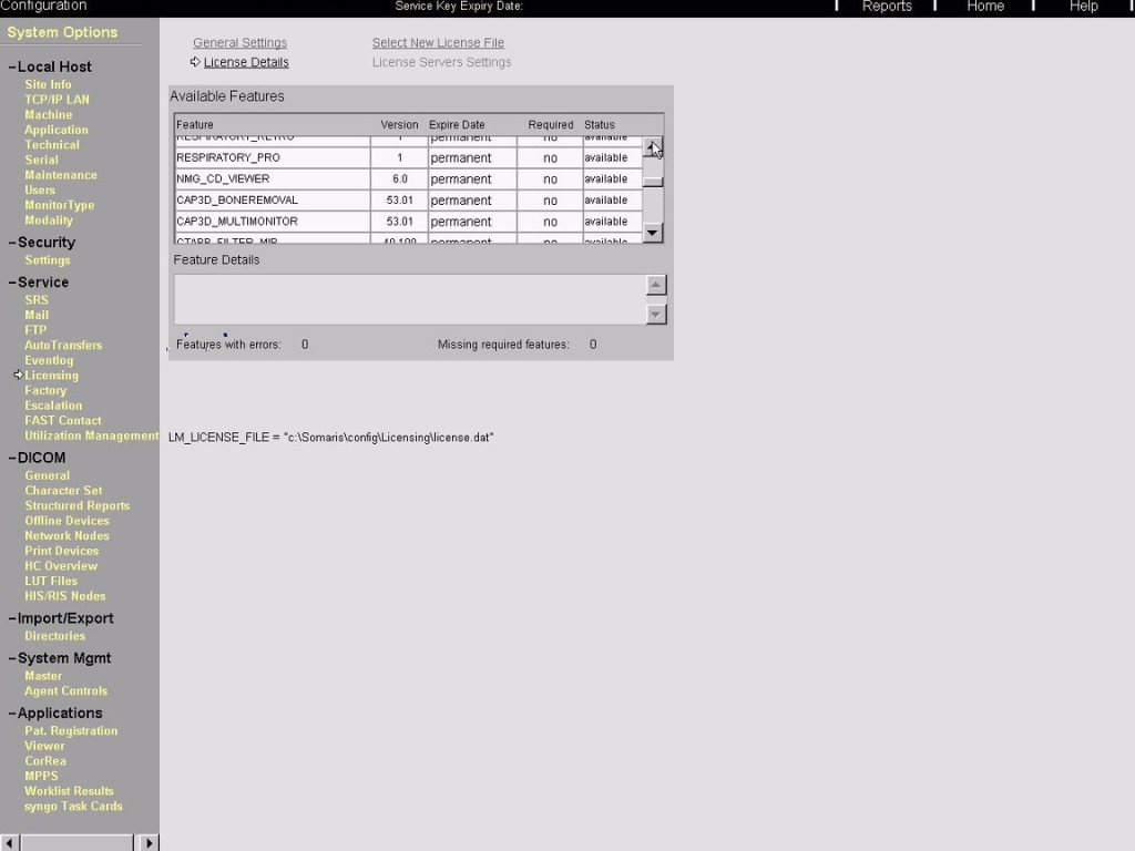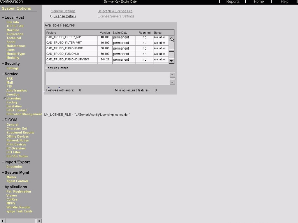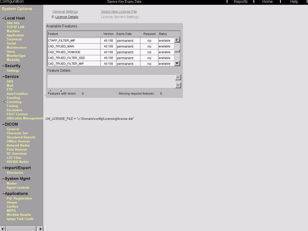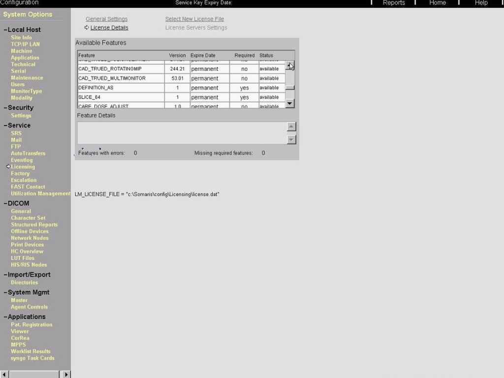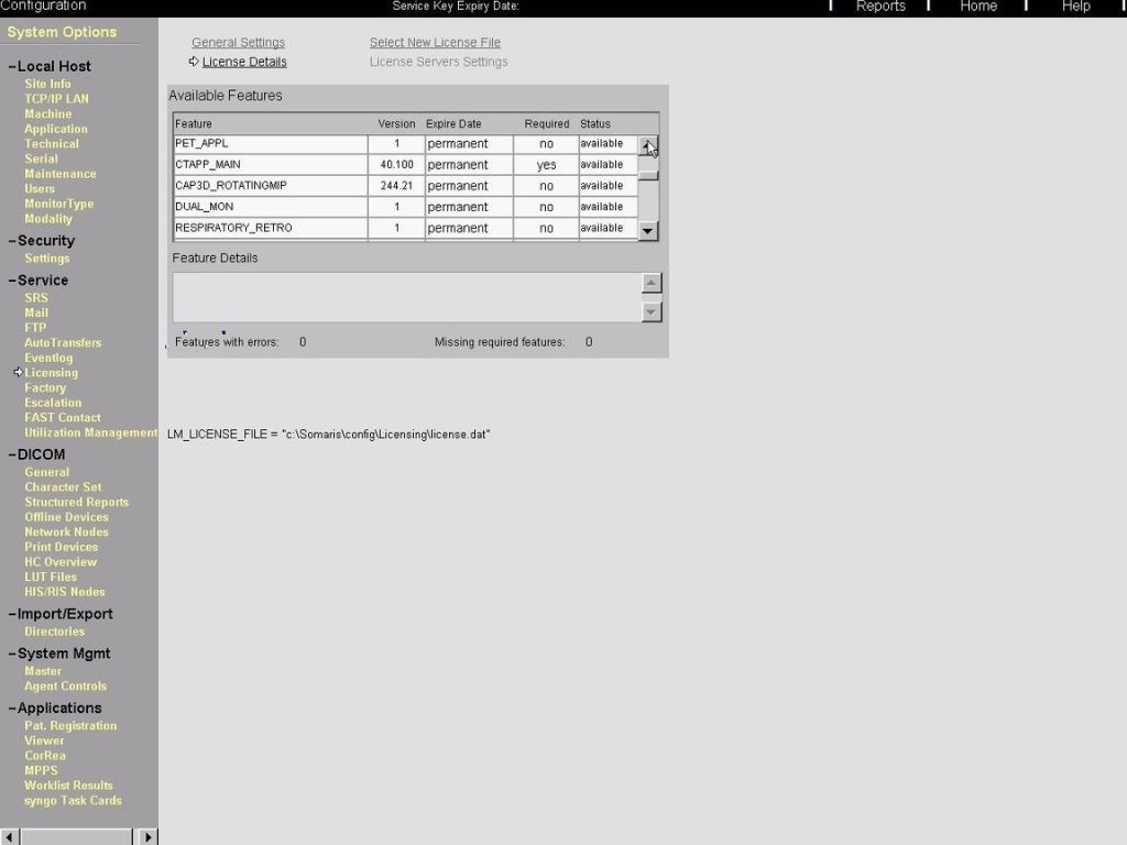 SW options console: GET_WORKLIST, CAP3D_FILTER_SSD, CAP3D_FILTER_MIP, CAP3D_MAIN, CAP3D_VOIMODE, BOLUS_TRACK, CARE_DOSE, SYNGO_GENERAL_LICENSE, CAP3D_FILTER_VRT, CAP3D_EDITOR, MPPS_SUPPORT, VOLUME_WORKFLOW, EXTENDED_FOV, PET_APPL, CTAPP_MAIN, CAP3D_ROTATINGMIP, DUAL_MON, RESPIRATORY_RETRO, RESPIRATORY_PRO, NMG_CD_VIEWER, CAP3D_BONEREMOVAL, CAP3D_MULTIMONITOR, CTAPP_FILTER_MIP, CAD_TRUED_MAIN, CAD_TRUED_VOIMODE, CAP_TRUED_FILTER_SSD, CAD_TRUED_FILTER_MIP, CAD_TRUED_FILTER_VRT, CAD_TRUED_FUSIONBASE, CAD_TRUED_FUSIONLM, CAD_TRUED_FUSIONCLIPVIEW, CAD_TRUED_ROTATINGMIP, CAD_TRUED_MULTIMONITOR, DEFINITION_AS, SLICE_64, CARE_DOSE_ADJUST, CARE_DOSE_PROFILE, CARE_DOSE_DASHBOARD, PET_HIREZ, PET_OSEM3D, PET_TRUEX, PET_DYNAMIC, PET_RESPIRATORY, PET_TOF, PET_NEMA_7, PET_RESPIRATORY_OPTIMAL, CAD_TRUED_BASIC, VOLTAGE_70KV, CARE_DOSE_AUTOKV, RECON_ITERATIVE_STEP1, ENH_EXTENDED_FOV, MR_Support_i, CAD_TRUED_FUSIONLAYOUT, PET_NEMA_7